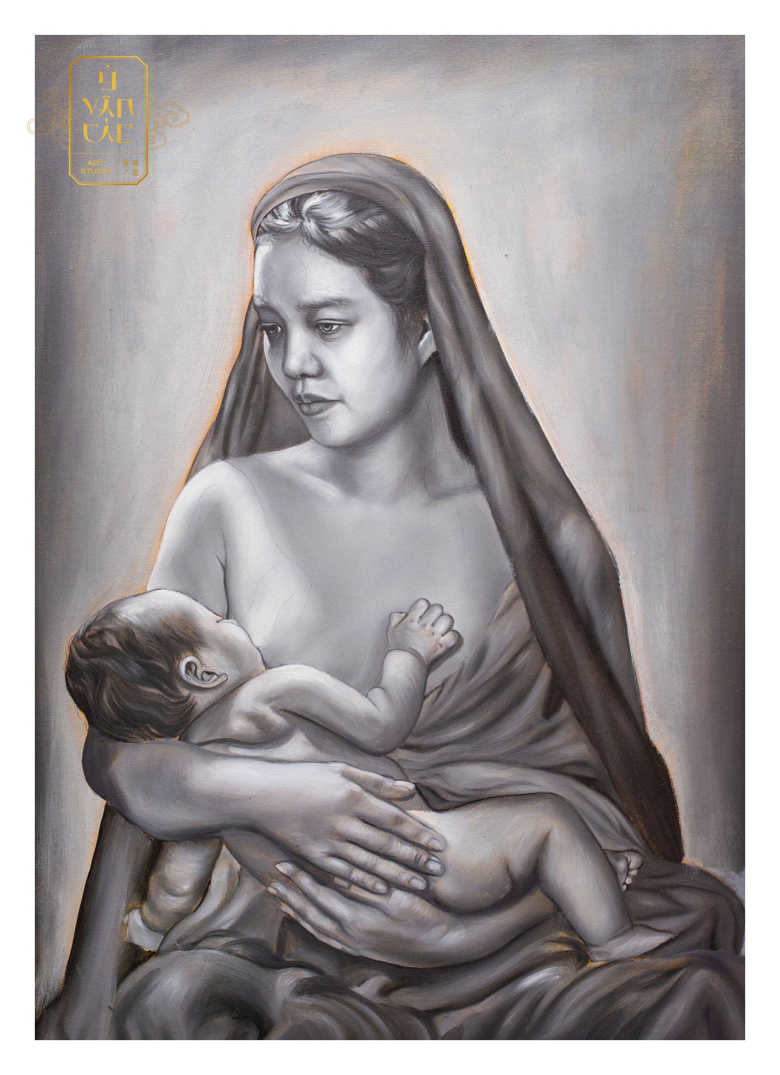 Tranh gia đình vẽ sơn dầu